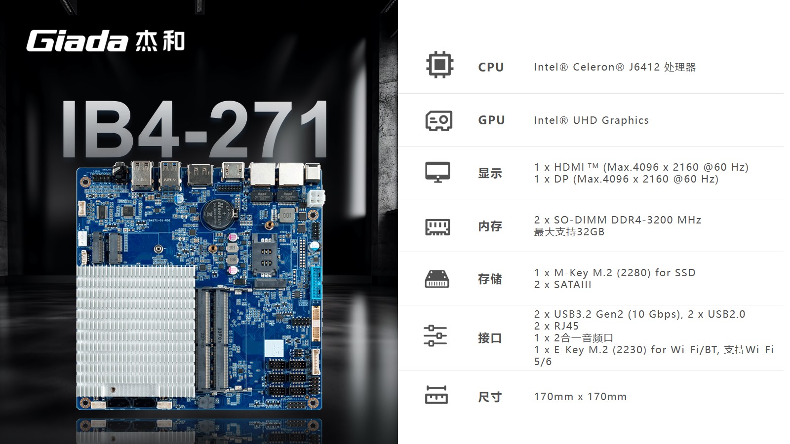 凯发(中国)IB4-271搭载的是Intel® Celeron® J6412处理器,Elkhart Lake平台在单线程性能上提升了1.7倍,在多线程性能方面提升了1.5倍,具有三个显示输出,包括DP、HDMI 和 LVDS 端口,能够为工业的多媒体应用、标牌显示和数字菜单提供足够的灵活性。