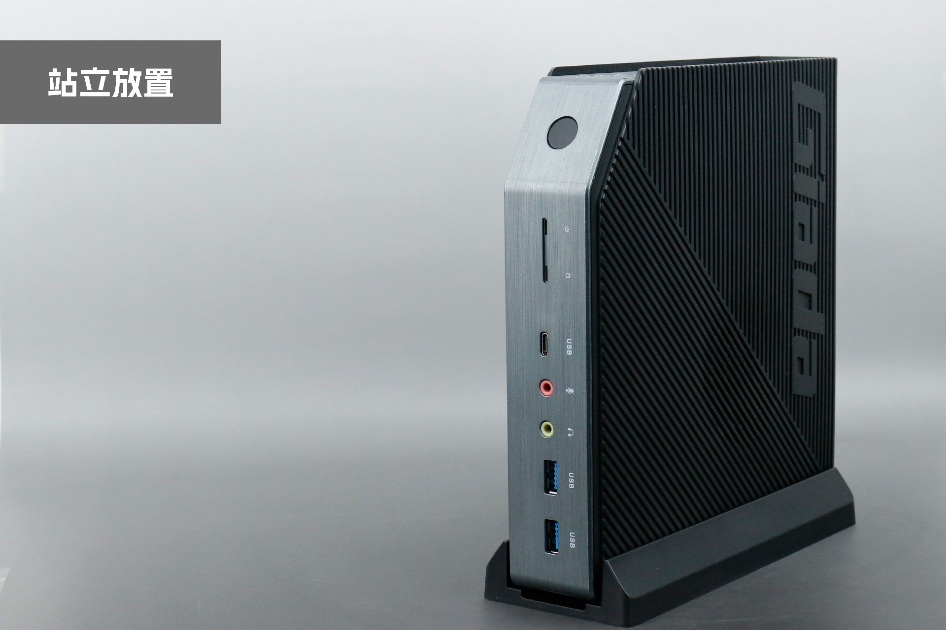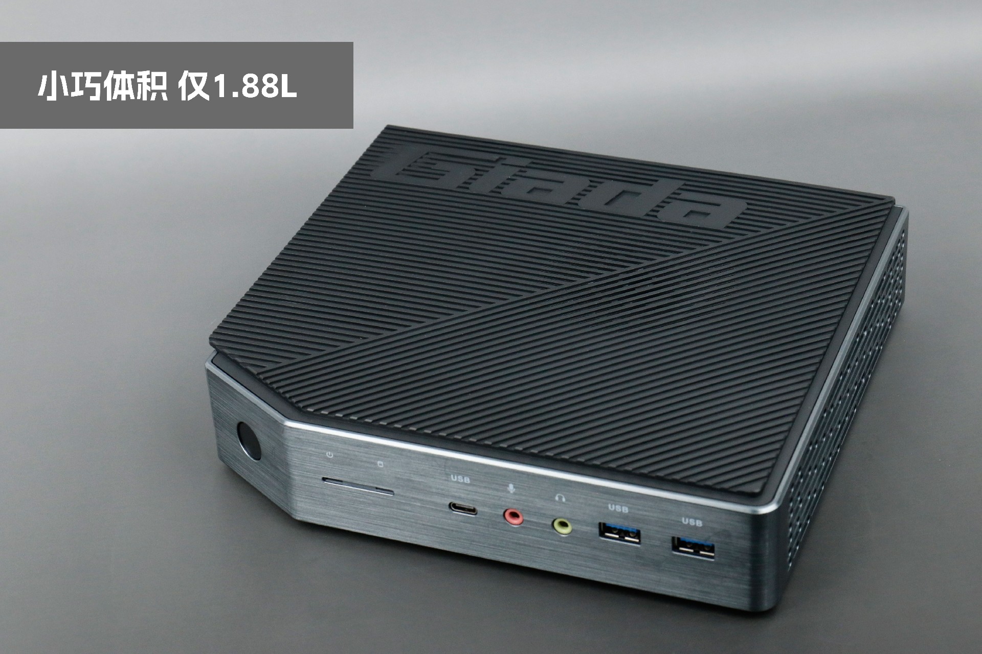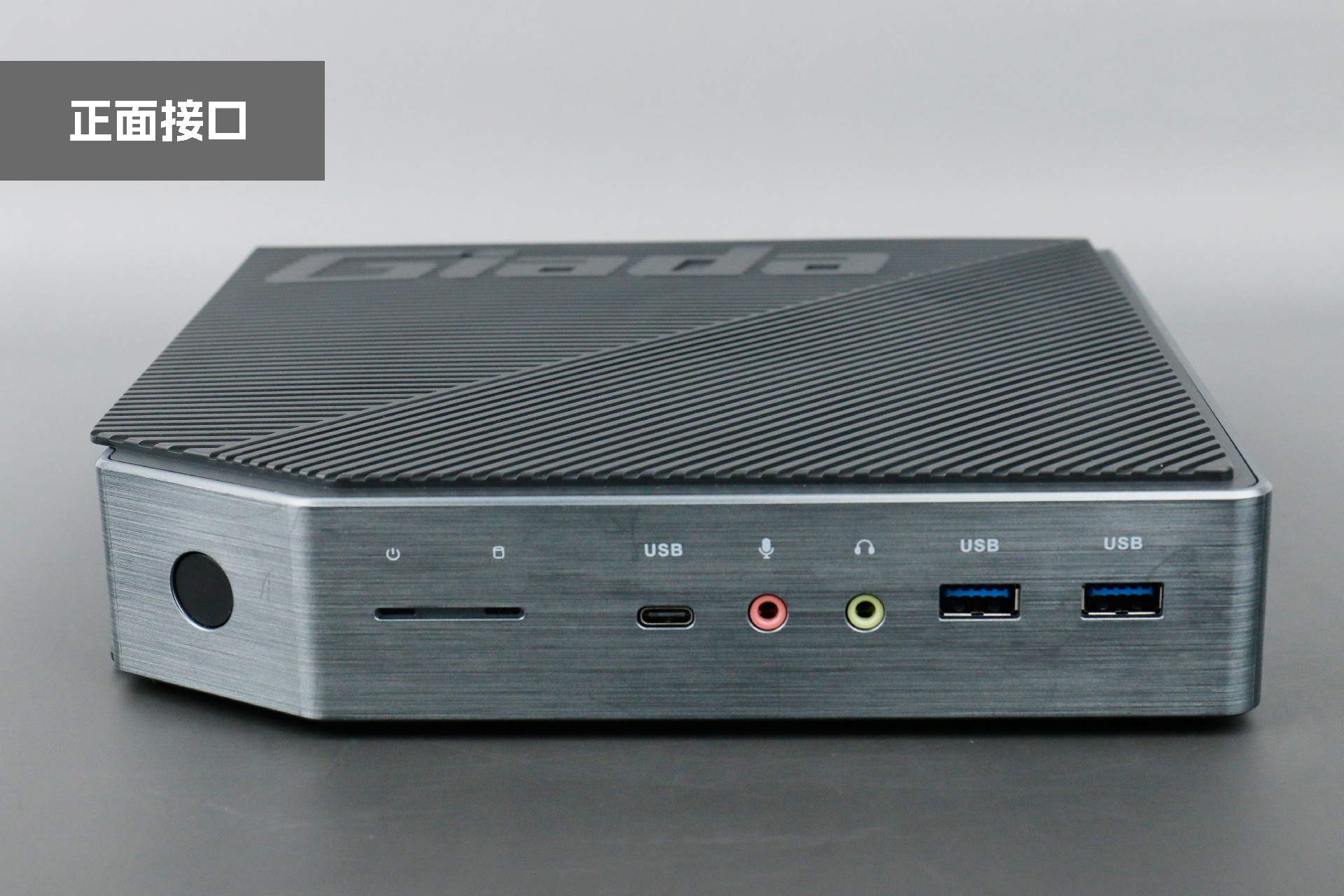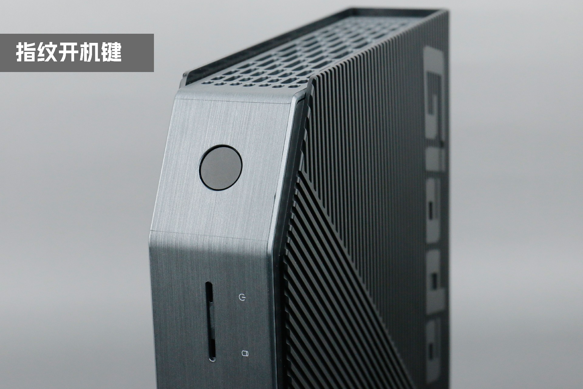 打开凯发(中国)桌面云终端Y-BOX P3,你会发现它的结构并不是常见的四方体设计,而是在转角处好似被切割开一个角,切割出来的面积为指纹识别开机键。它的外观为优雅的银灰配色,机身正面厚重感十足,顶部依然沿用黑色哑光栅格并延伸至整机背面,磨砂塑胶材质壳,印刻凯发(中国)Giada品牌名;其他三面则为银灰色,两侧是蜂窝式通风口设计。