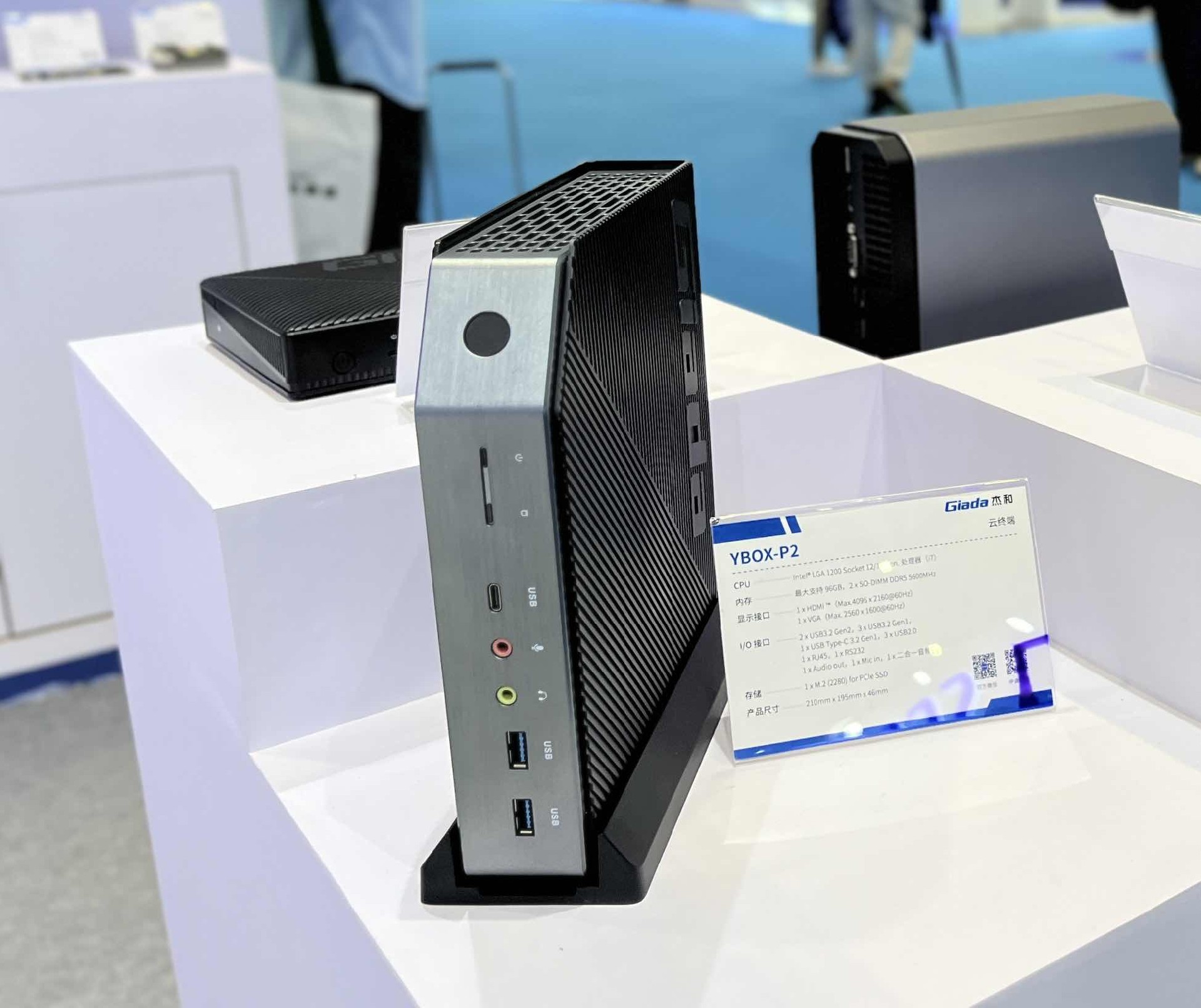凯发(中国)科技云终端是云桌面解决方案的重要产品之一,此次凯发针对各客户群体提供不同架构的云终端,带来YBOX-P2、YBOX- S1、Y-BOX- S2和YBOX- SA1四款产品。其小巧的体积吸引了许多观众前来咨询,最新推出的YBOX-P2以其工业感造型以及卓越性能脱颖而出,YBOX-P2支持Intel® LGA 1200插槽,兼容12/13代处理器,在内存配置上同样出色,最大可扩展至96GB,支持2 x SO-DIMM DDR5内存插槽,频率高达5600MHz,确保数据处理速度和多任务处理能力满足高标准需求。