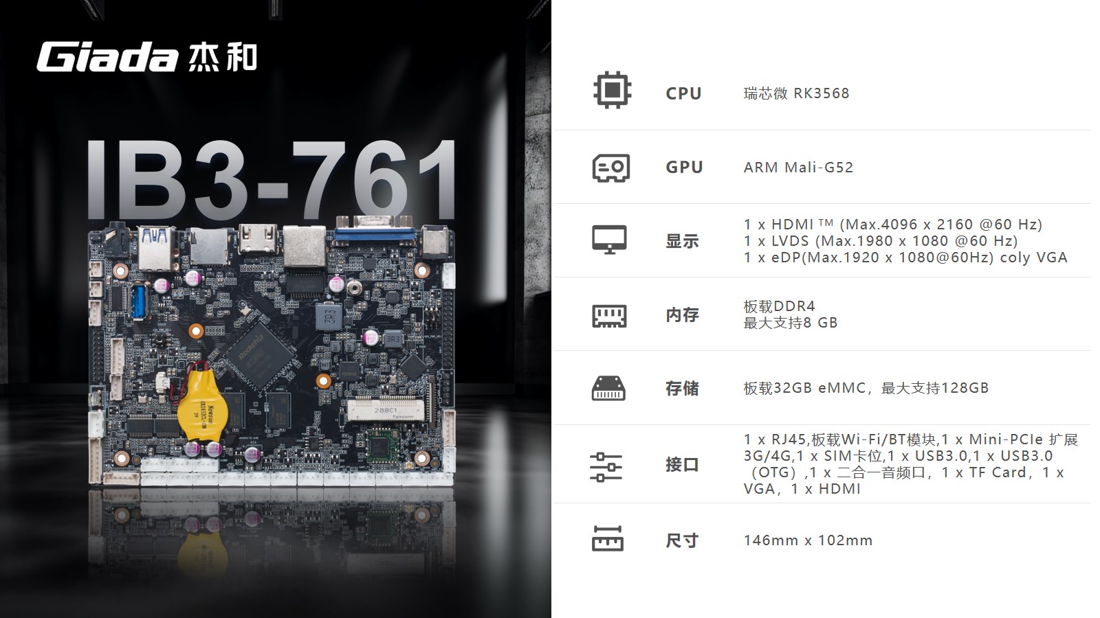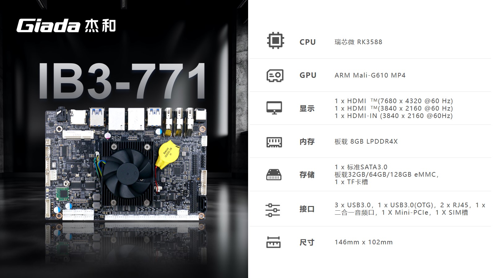 本次凯发(中国)科技高交会展示的工业计算机主板IB3-771、IB3-761,搭载了Rockship的芯片,可应用于工业自动化、物联网解决方案和汽车系统,已经被多数客户部署在工厂车间以及物联网生态系统的智能设备中。