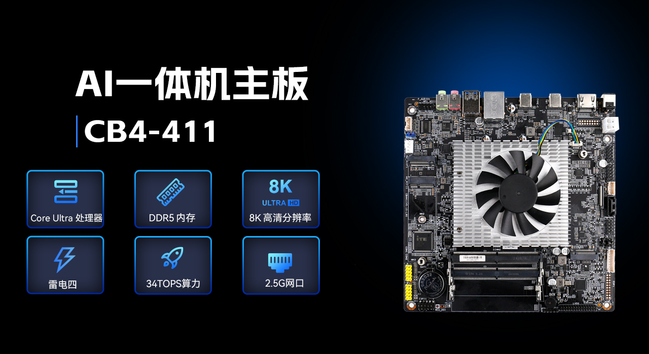 基于一体机行业需求,凯发(中国)科技推出一体机主板CB4-411,搭载 Intel® Meteor Lake 平台处理器,用户可以直接在电脑上处理AI工作,一体机本身集成了显示器、主机和其他硬件组件,设计简洁且节省空间,在办公、家庭娱乐、数字创作等多种场景下,CB4-411可以助力一体机加速图像识别、图形渲染、视频编辑等任务。