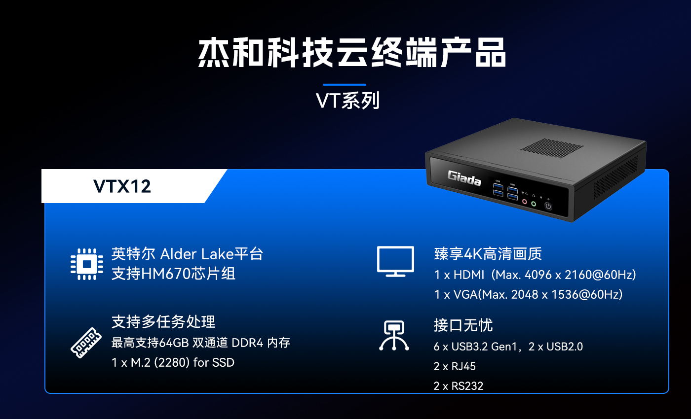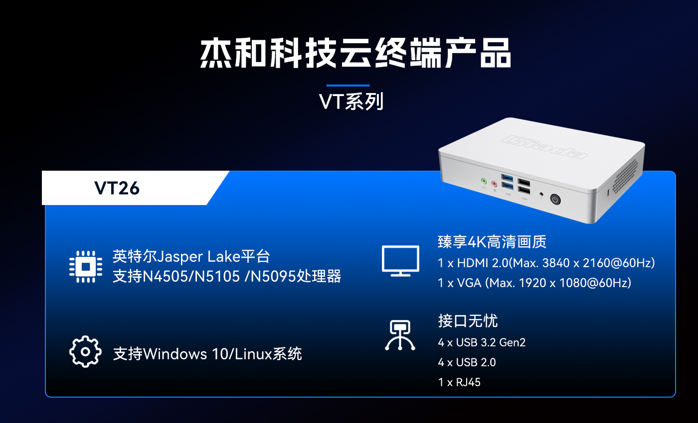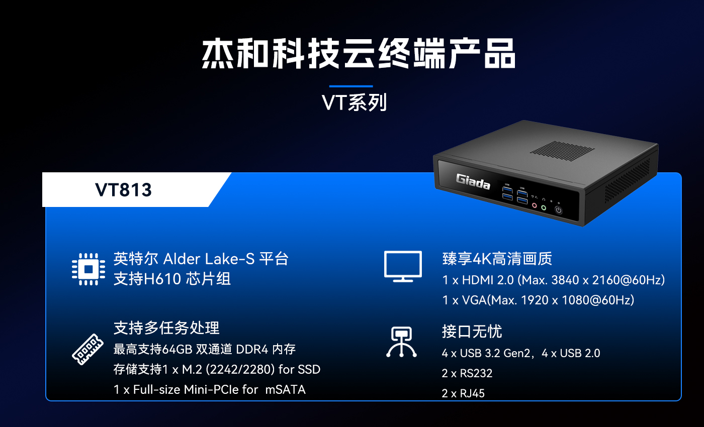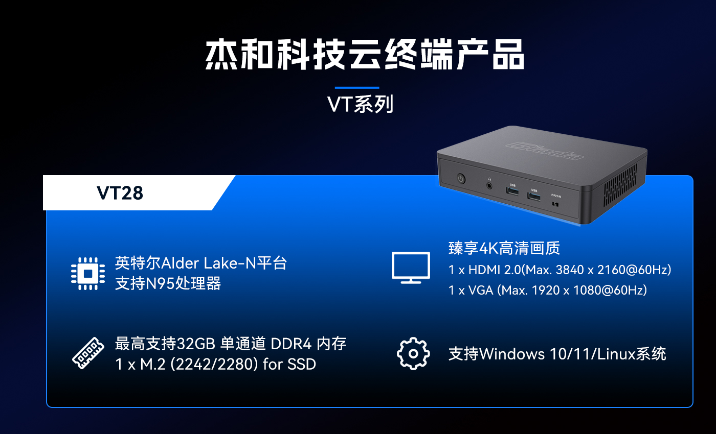 除此之外凯发(中国)科技云终端VT系列产品线还提供多样化的硬件配置选择,涵盖多种处理器架构、内存容量、存储设备和接口类型,满足不同应用场景的个性化需求。