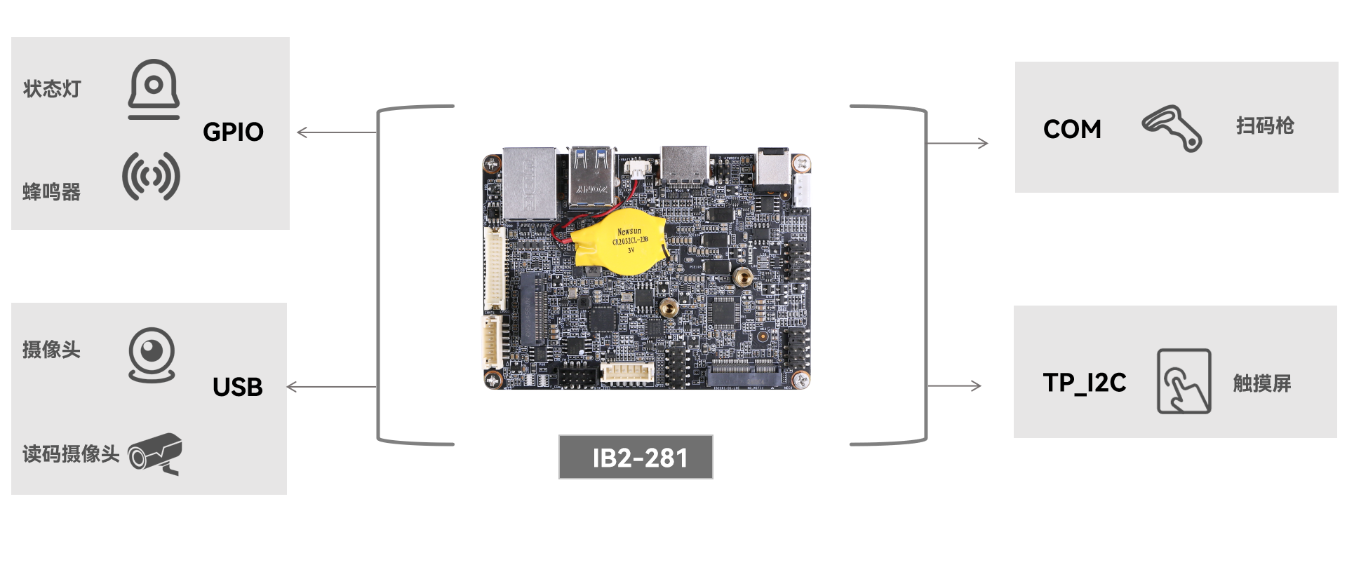凯发(中国)科技工业主板 IB2-281 提供灵活的主控平台选择与丰富的接口资源,适用于智能分拣系统嵌入应用: