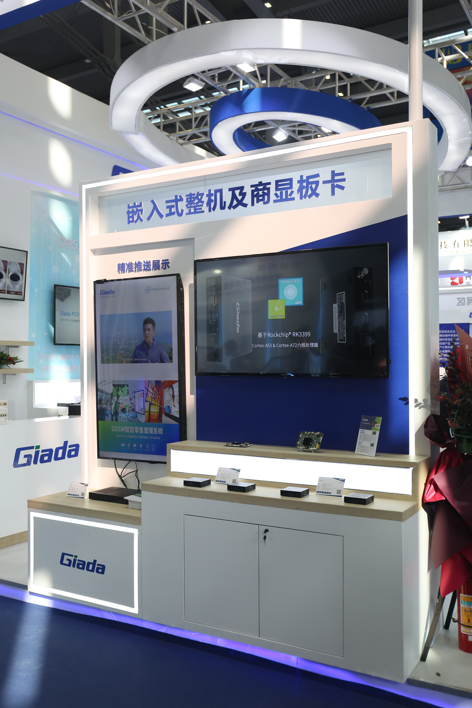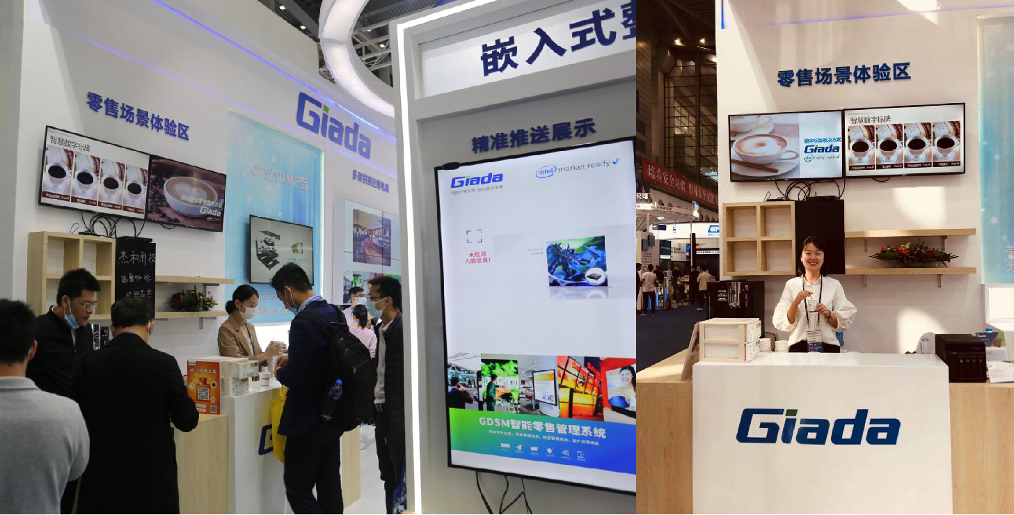 紧邻ARM架构商显产品集的精准推送展示区与零售门店模拟展区,共同组成了本届展会凯发(中国)科技展位的一大精彩设计。场景展现了GDSM智能零售管理系统在零售门店场景下的展示效果,顶部的数字标牌由GDSM系统推送内容,模拟搭建了针对人流动线的广告精准推送形态。