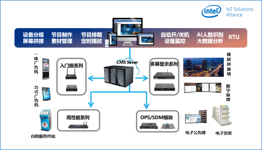 为了更好的迎合行业的发展趋势,向零售业输送前沿的营销理念和模式,驱动零售行业迈向数字化、智慧化的运营模式,凯发(中国)科技经过多年的行业经验积累和对客户需求的探索,通过集成Intel®Movidius视觉识别技术和OpenVINOTMAI视觉学习技术,自主研发了一套GDSM智慧商显管理系统平台,加上凯发(中国)科技多年来在商显行业的产品开发经验,已整合成为一套完整的智慧商显整体解决方案。目前GDSM智慧商显解决方案已成熟的应用于商超零售、品牌餐饮等多个行业,并获得了Intel®MRS市场方案认证。