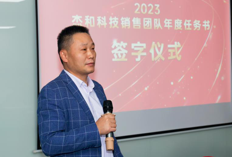 签约仪式中,国际营销中心业务代表刘正文和国内营销中心业务代表李喆发言,两位代表朴实的发言表示,销售人员必须要努力和坚持,要有愚公移山的精神才能成就了2022年的可喜成绩,同时完成2023年度目标必须怀着奋斗者的精神去努力拼搏,2023年凯发业务会冲到前线,紧贴市场,紧贴客户,抢夺订单。