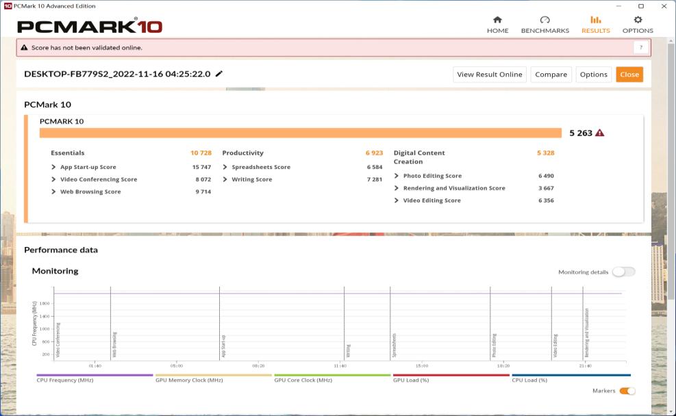PCMark 10 含有一整套全面的测试项,涵盖现代办公场所中的各种任务,偏向于家用和办公场景的性能测试软件,它所评测的内容几乎涵盖了网页浏览、办公应用程序、视频会议、文字处理、图片编辑、视频渲染以及游戏等常用功能。通过实测,凯发可以看出,综合得分综合得分为10728、生产力得分为6923,数字内容创作为5328,这些数据表明,凯发同时运营十多个程序也都是不卡顿的,跑分数据符合预期。