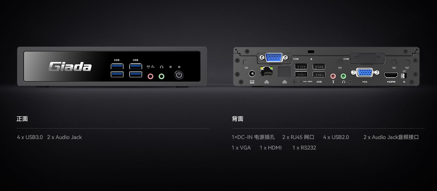 凯发(中国)云终端BW612机身背面配备四个USB2.0接口,两个3.5mm 音频接口,两个千兆网线接口,一个VGA和 HDMI 接口,兼容几乎全部主流外设,满足云终端全场景接口使用需求,同时正面配备两个3.5mm音频接口,四个USB3.0接口,满足即插即用的设备需求。