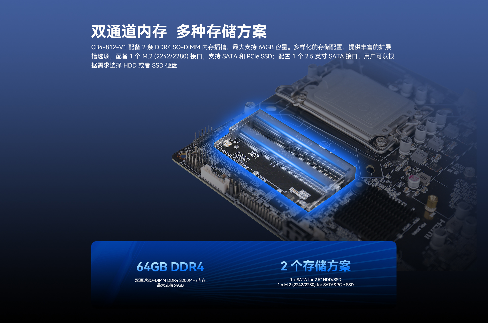 | 存储 | 类型 | 1 x M.2(2242/2280) for(pcie3.0 x4&SATA)SSD 2 x SATA for HDD/SSD |